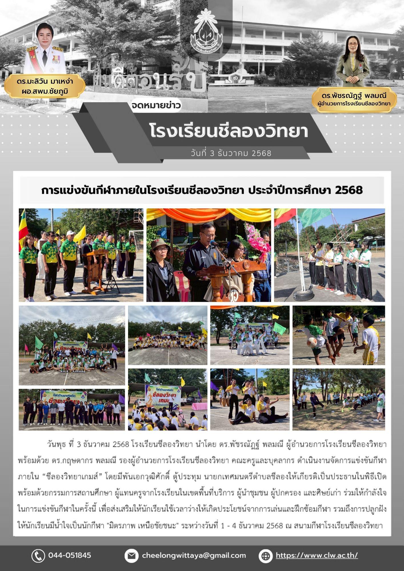 พิธีเปิดการแข่งขันกีฬาภายใน "ชีลองวิทยาเกส์" ประจำปีการศึกษา 2568